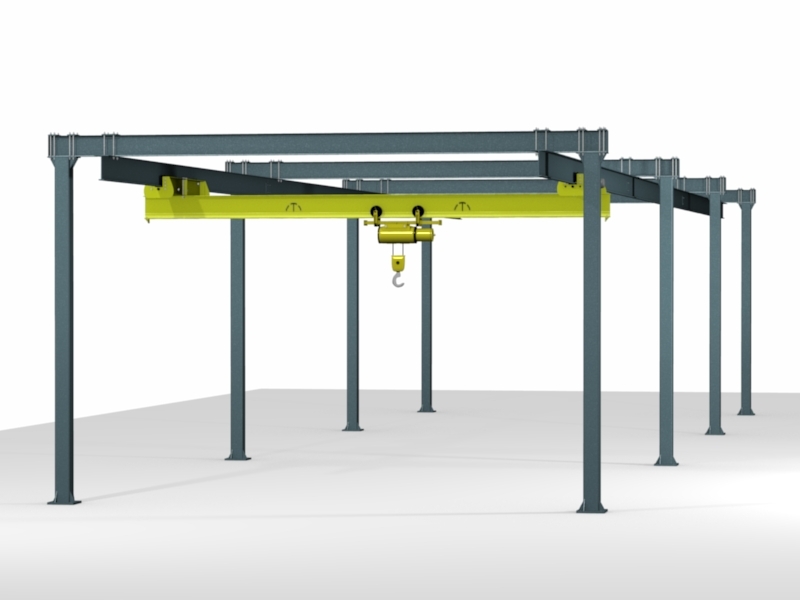 Capacities from 250 to 4000 lbs. with bridge lengths from 4 ft to 34 ft. Designed to be completely free standing and do not require sway bracing. Multiple bridges can be installed on one runway system to increase productivity and flexibility in a work area.